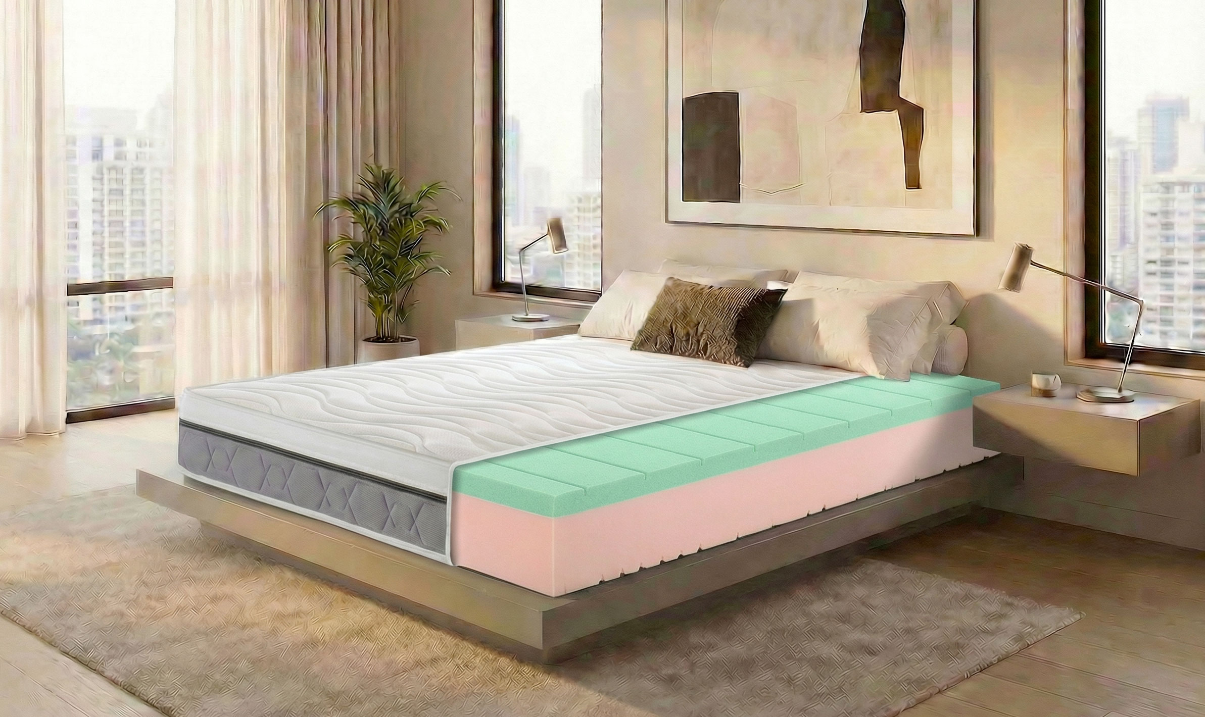 Anima interna: Lastra a 2 strati con Water Foam e 5 cm di Memory Aloe Bios.